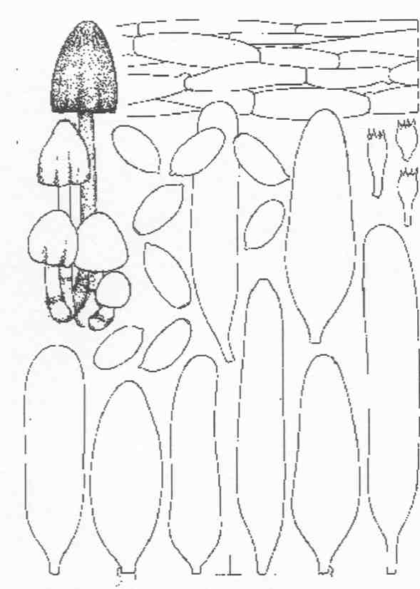 Coprinopsis acuminata, Zeichnung Kees Uljé