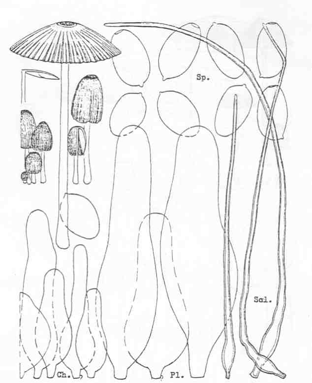 Parasola auricoma , Zeichnung Kees Uljé