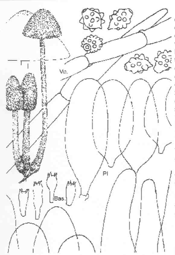 Coprinopsis calospora, Zeichnung Kees Uljé
