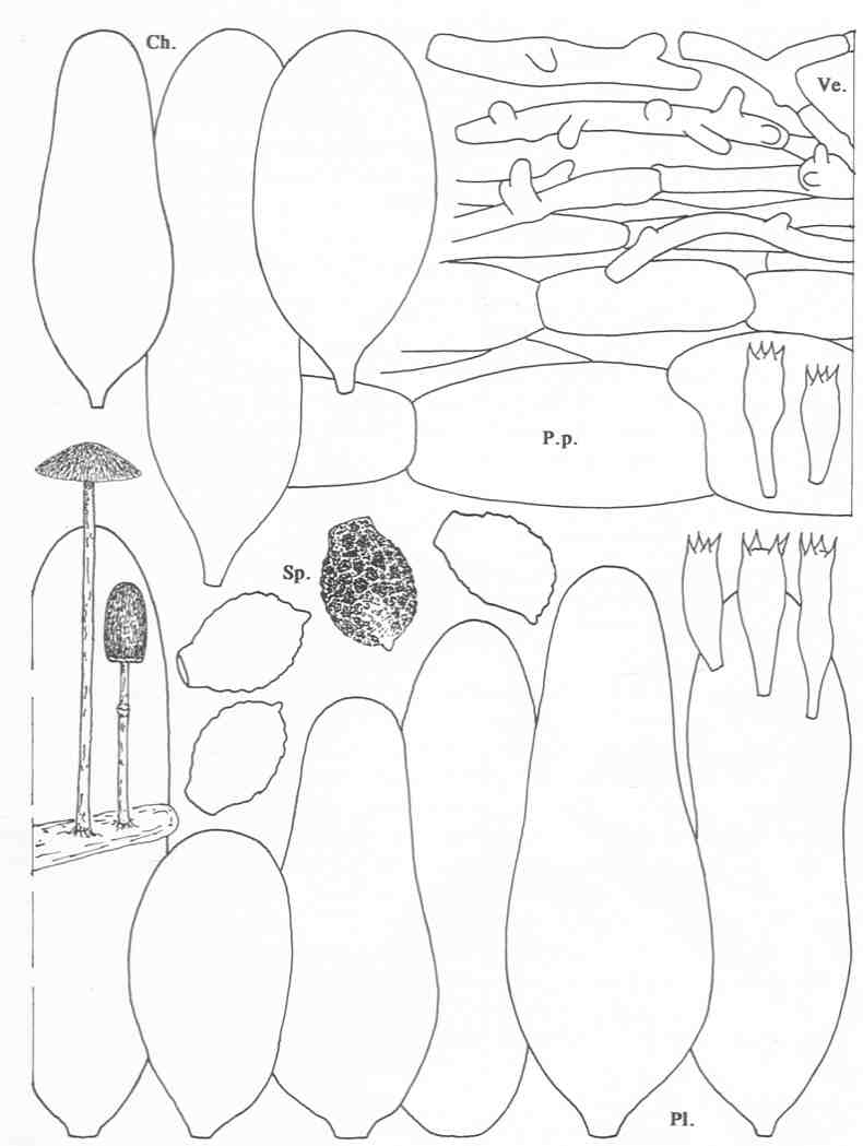 Coprinopsis echinospora, Zeichnung Kees Uljé