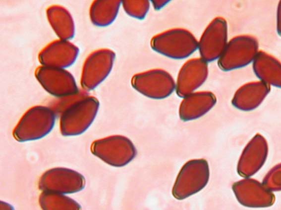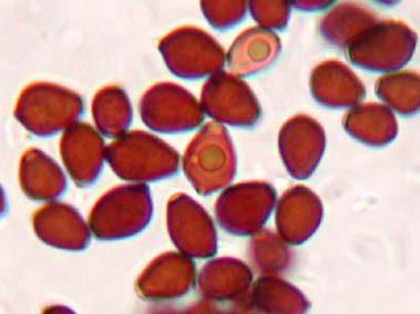 bis 10,5/ - 6,5 um Porus: groß, wie abgeschnitten. Sporenform: mitraförmig, mützenförmig in Vorderansicht. Porus: groß, wie eingedrückt ![]() |