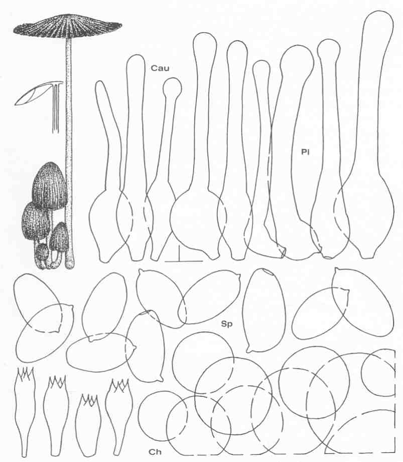 Coprinellus plagioporus, Zeichnung Kees Uljé