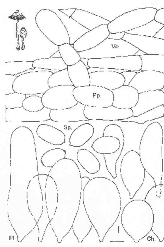Coprinopsis pseudoradiata, Zeichnung Kees Uljé