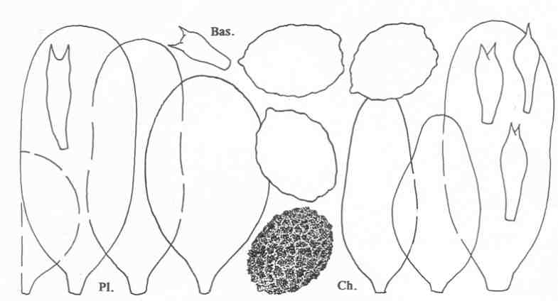 Coprinopsis rugosobispora, Zeichnung Kees Uljé