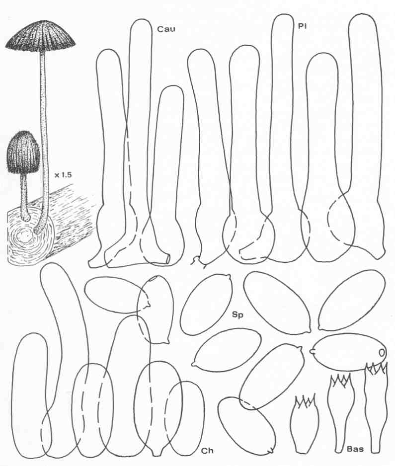 Coprinellus subdisseminatus, Zeichnung Kees Uljé