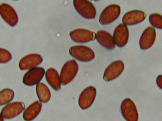 Velum mit bräunlich gefärbten Hyphen Stiel der Frk. ohne Ringzone! Sporenform: in Vorderansicht ellipsoid in Seitenansicht abgeflacht Sporenfarbe: dunkler als C. saccharinus Porus: zentral, mittelgroß, undeutlich, wie eingedrückt
