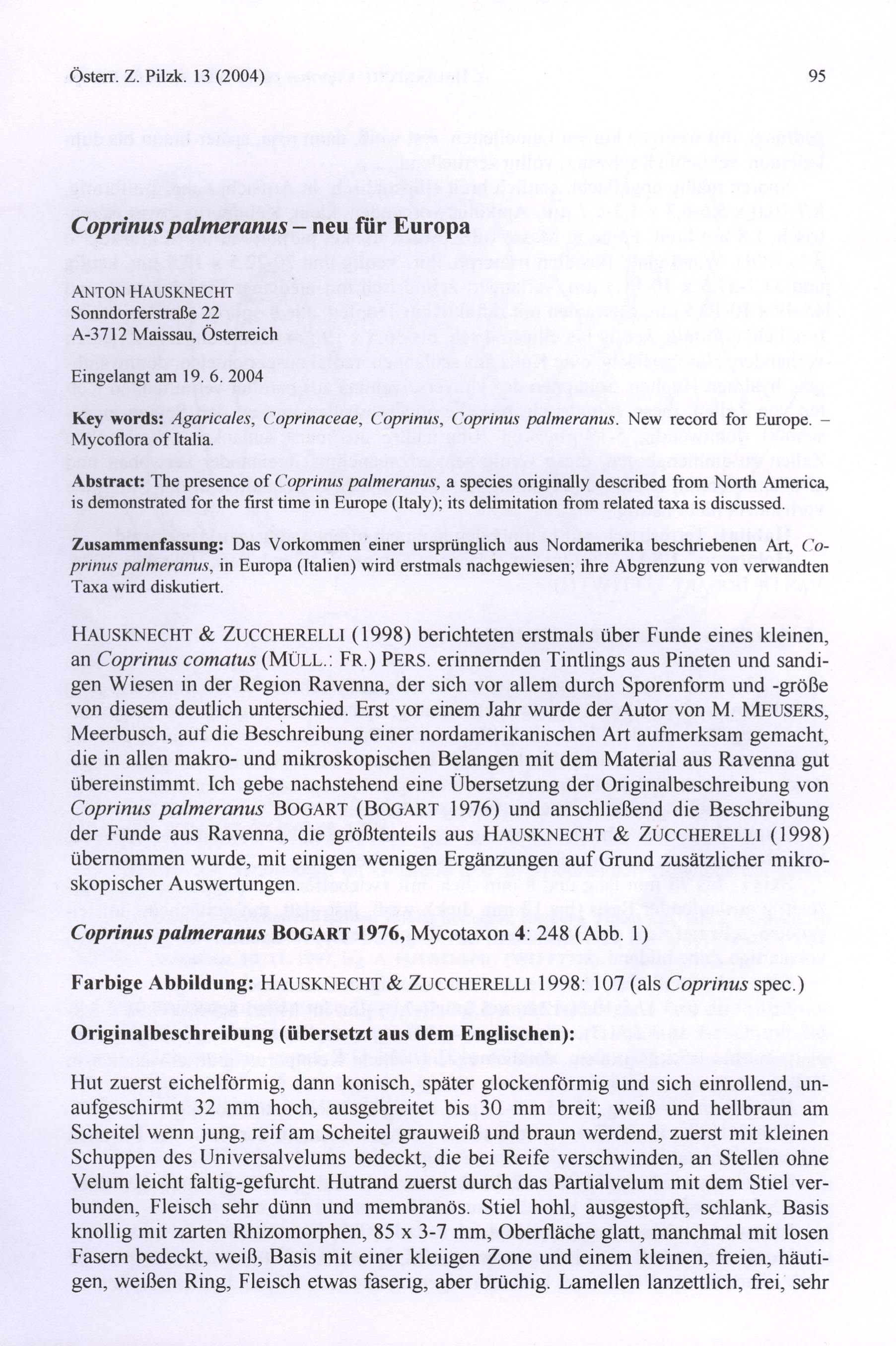 Meinen eigenen Coprinus Funden - - - und nach meinen eigenen Artauffassungen.