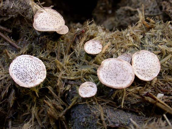 Die Punktierte Porenscheibe oder auch Roßapfel Kernpilz genannt,