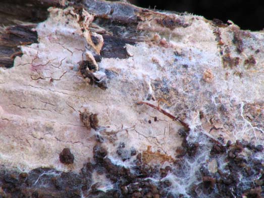 Der ockerfarbene Sternsetenpilz kann auch Steine mit seinem Pilzgeflecht überziehen und gilt demnach als Hausfäulepilz. |