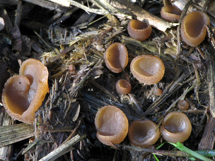 Den rauhsporigen Kot-Becherling fand ich bis jetzt immer nur in Verbindung mit Pferdedung.
