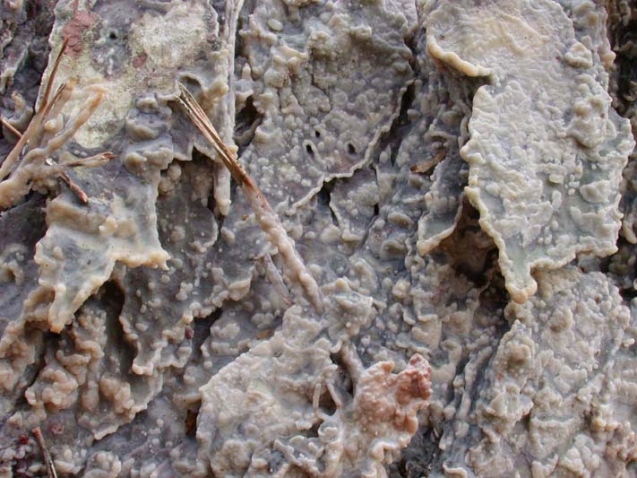 Der große Zystidenrindenpilz wächst an Nadelholz, besonders