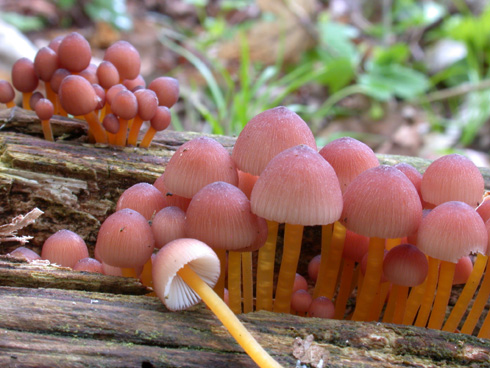 Der gelbstielige Nitrat-Helmling riecht frisch chlorartig, in der Hutfarbe im frischen Zustand etwas an M. haematopus dem Blut-Helmlig erinnernd.