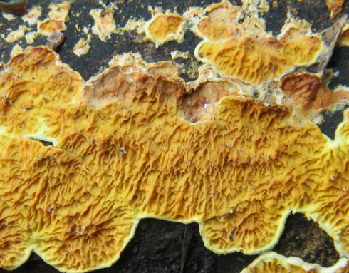 Der goldgelbe Scheinfältling wächst auf Kiefer und ist hier im Rheinland einer der nördlichsten Funde in Deutschland