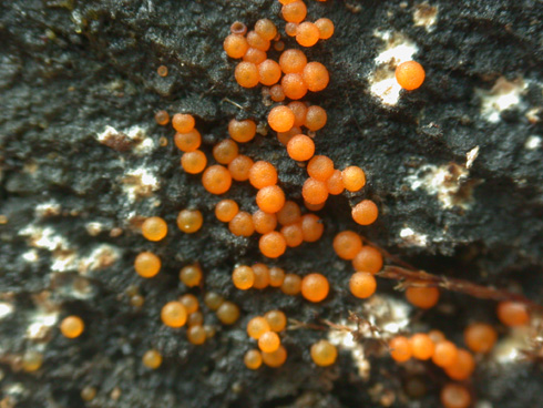 Häufige Art, 0,2 bis 0,4 mm groß, im Alter zu becherartigen Restteilen zusammenfallend.