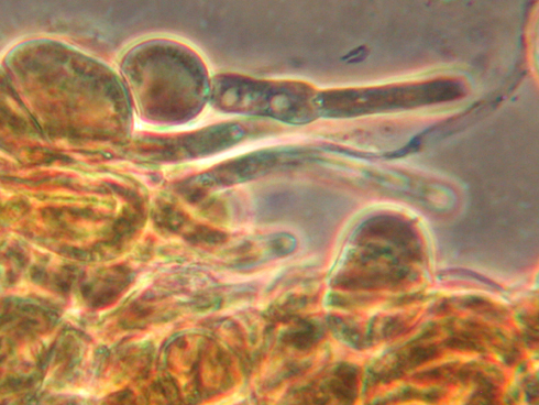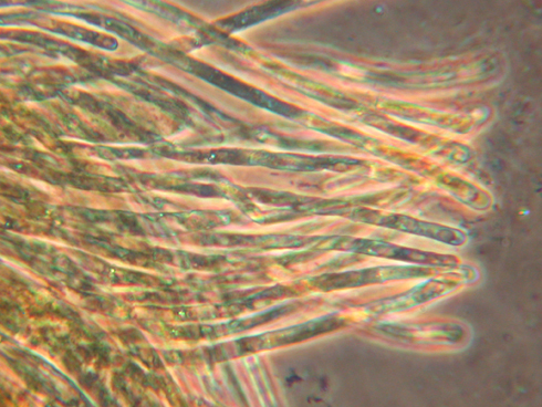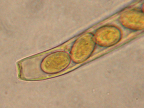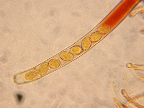 Asci bis 220µm lang, nicht blauend in Lugol oder Melzer, zweidrittel färben sich