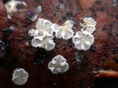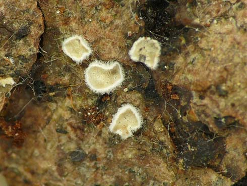Gefunden am 04.11.2008 in MTB 4804/2 Mönchengladbach (Volksgarten) unterhalb liegendem Eschenast auf Rinde. Ein Basidiomycet, Größe ca. 1mm.