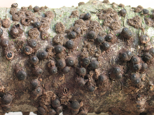 an älteren am Boden liegenden Ästen von Feld- Ulme.