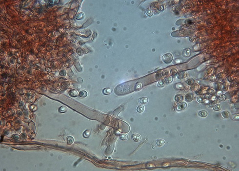Basidien: 4- Sporig, Sporen: 5 - 5,8 x 4 - 5 mµ