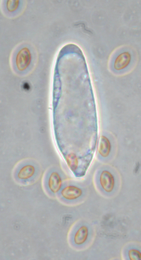 Einzelsporen (von 2sp Basidien?) bis 16,5 µm lang,