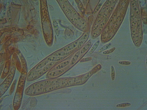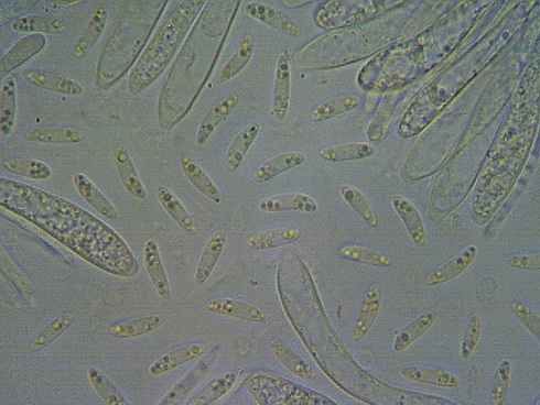 Die Asci waren Jod positiv und 60 x 6,5 µm. Asci 8 sporig, Sporen 8,8-10,5 µm.