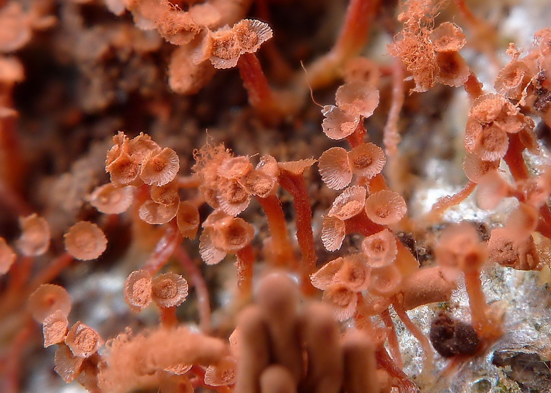 Arcyria denudata Arcyria ferruginea Arcyria affinis Arcyria incarnata Arcyria nutans Arcyria stipata Arcyria globosa . Arcyria nutans Gefunden: am 02.09.2015 in MTB 1828/4/3 Bosau, an alter liegender Erle