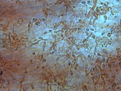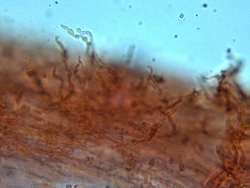 Hutoberfläche mit wenigen größeren kopfigen Zystiden |