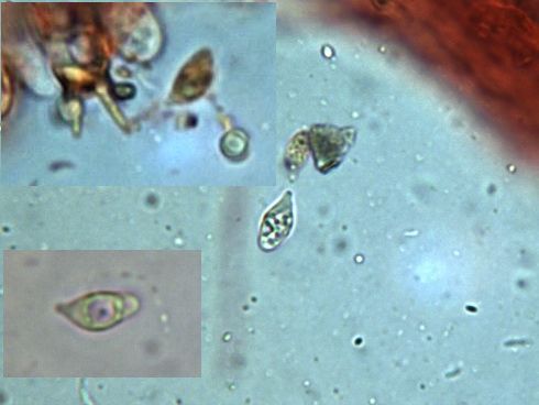 Sporen länglich rhomboid, unausgereift kleiner zitriform |