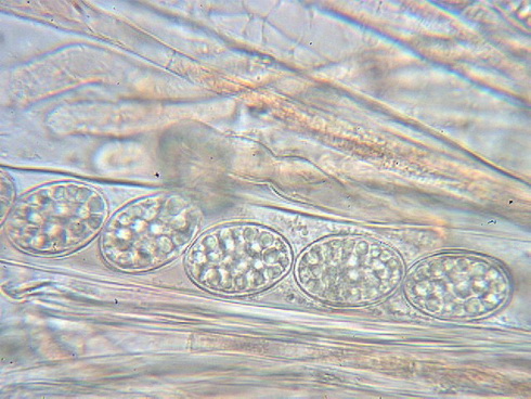 Paraphysen septiert; Enden auf 7 – 10 mµ erweitert.