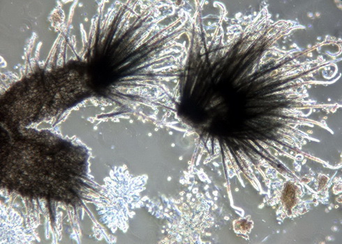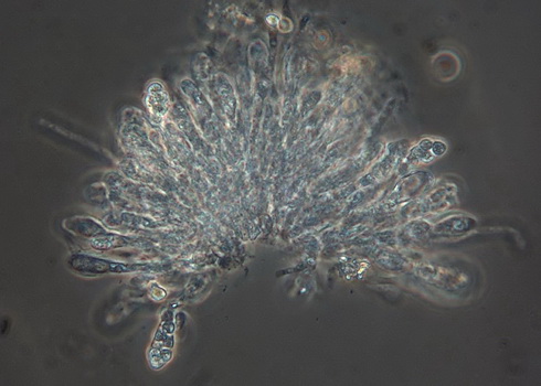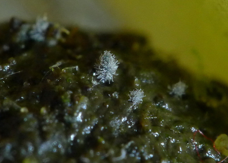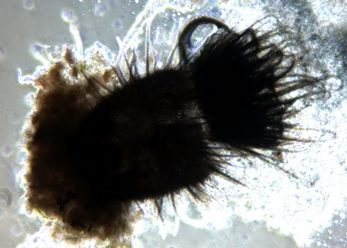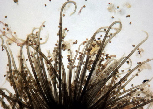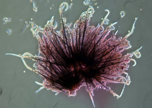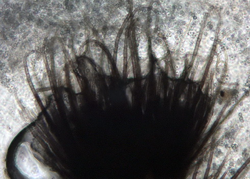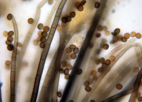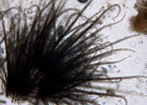Haare: 120 - 190 mµ lang, an der Basis bis 6 -7 mµ breit, oft septiert, inkrustiert, Spitze verjüngend oder gebogen.