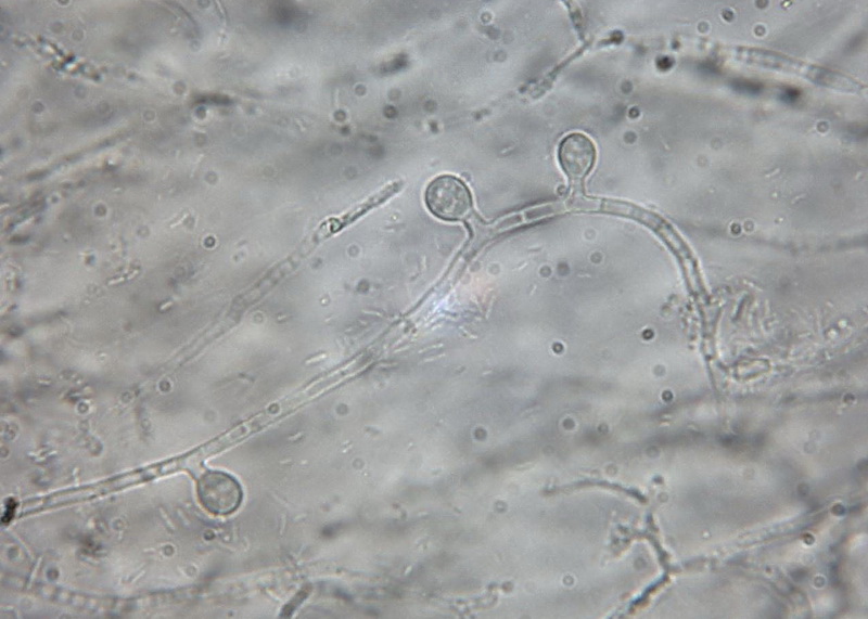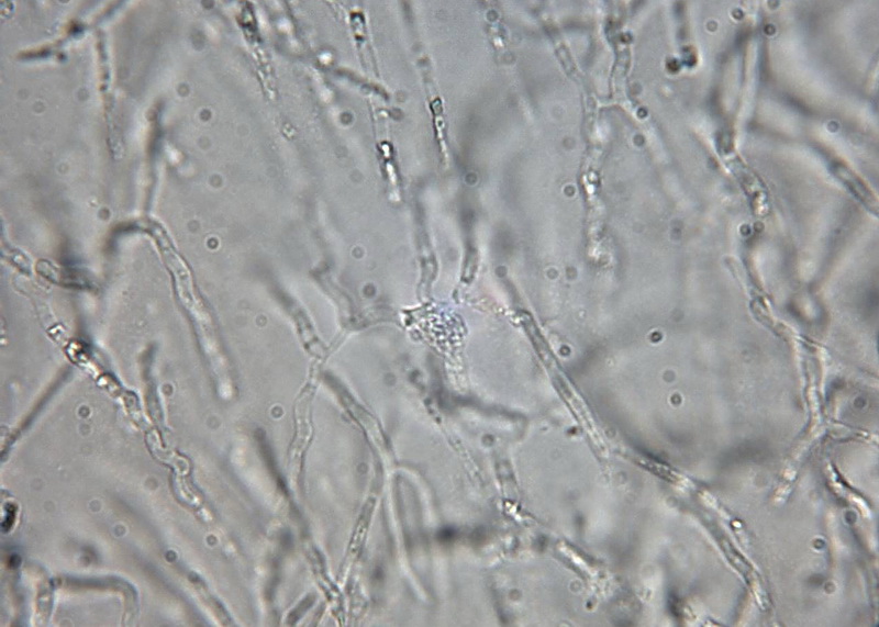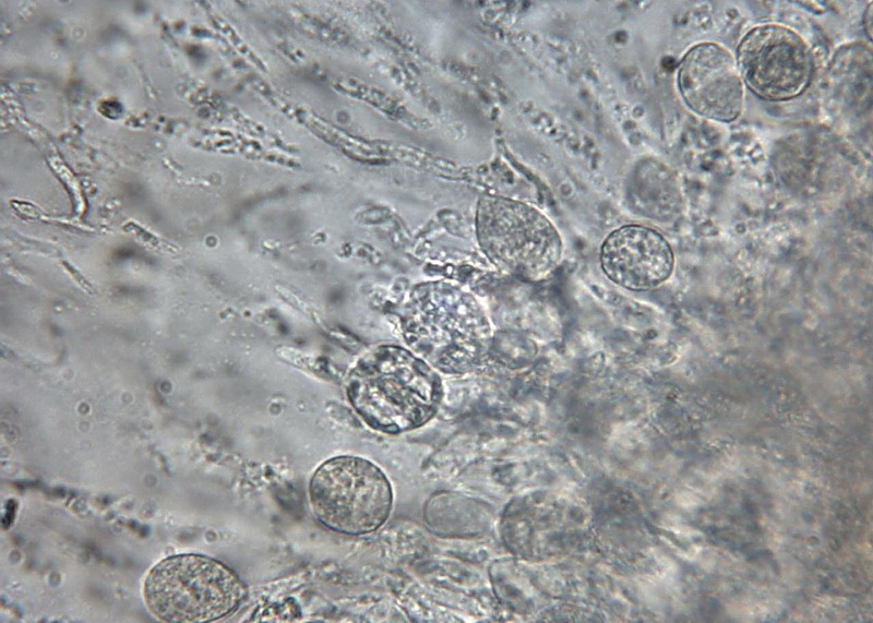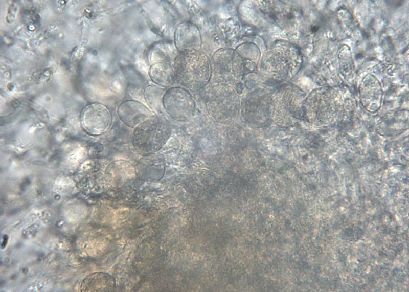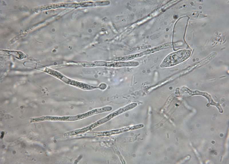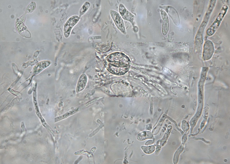 Schnallen: keine, Sporen: 14,8 - 15 x 5,2 - 6,6 µm, (noch nicht ausgereift)