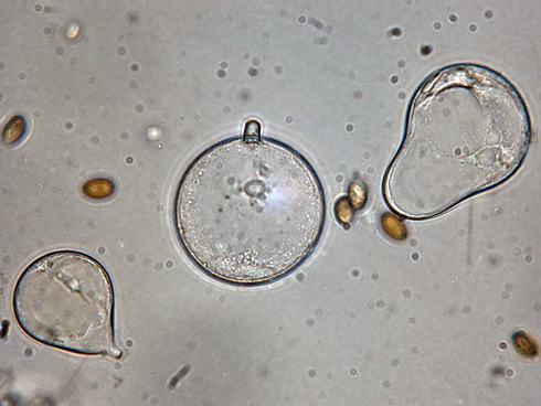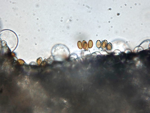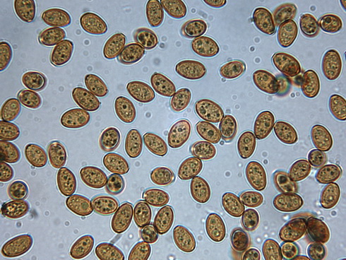 Sporen: 11,3 - 12,5 x 6 - 7,5 µm, Porus zentral, deutlich, oft mit Inhalt oder getrockneter oeliger Substanz.