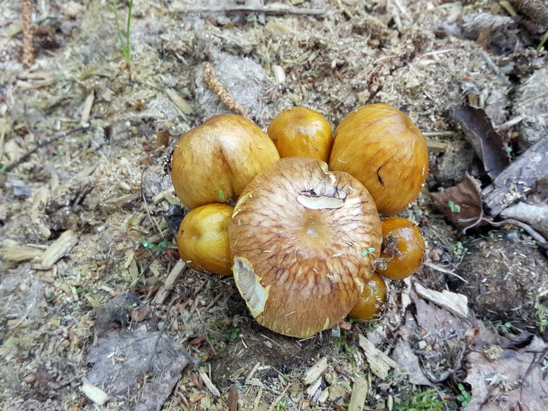 Hut: 20 x 50 mm, olivbraun bis olivgelb, orangebraun, runzelig- aderig oder fast glatt, gelatinös,