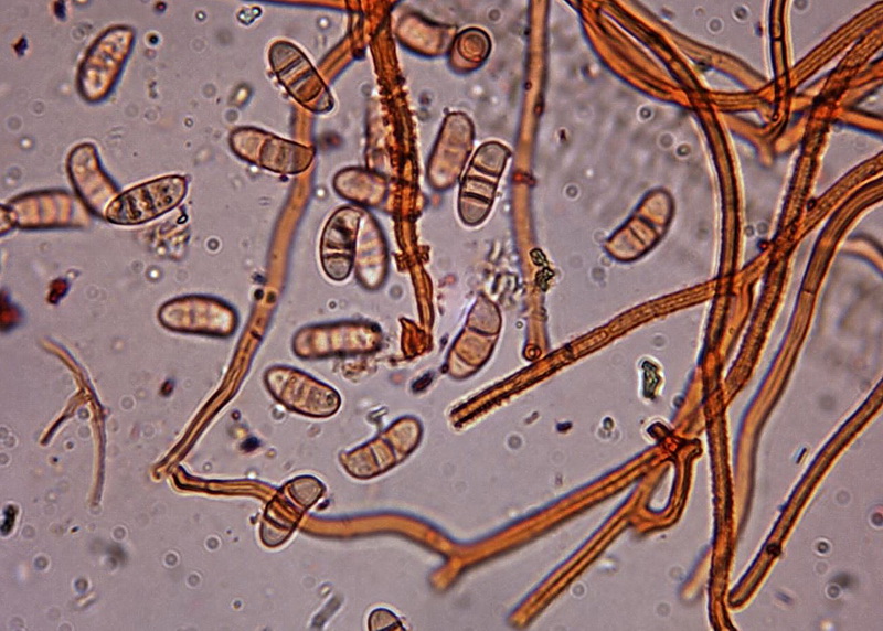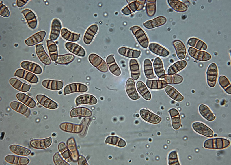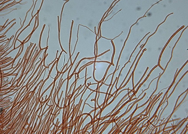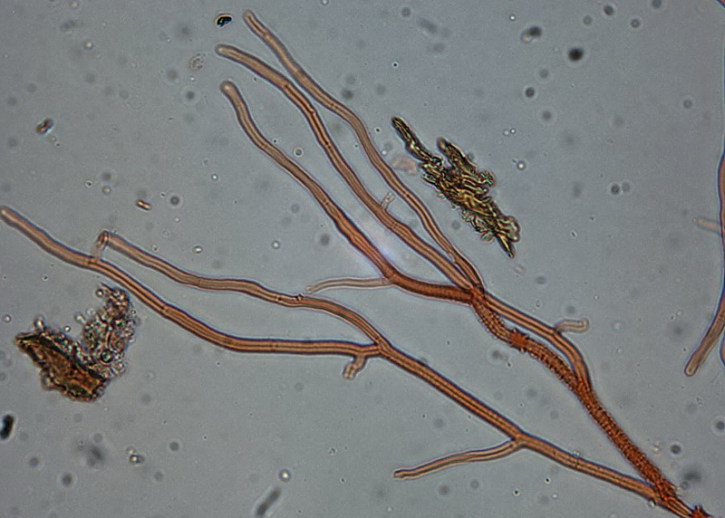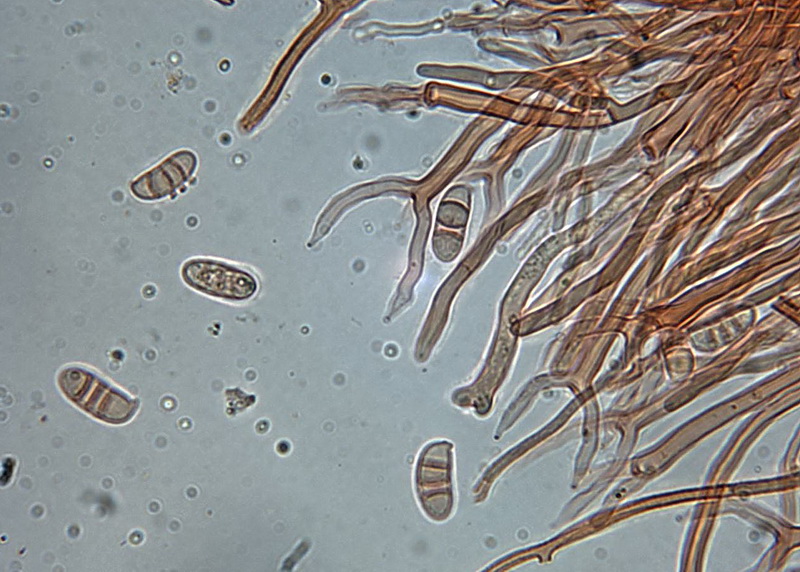 Frk. gestielt, alle Hyphen ohne Schnallen, Sporen: 13,9 - 14,5 x 5,2 - 5,6 µm