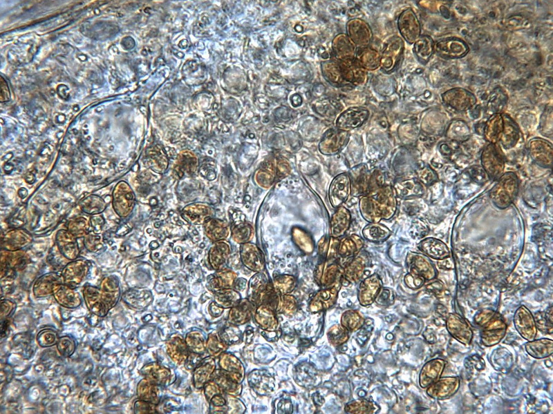 Sporen: 2- sporig, 9-9.8x 4,2 - 5,9µm