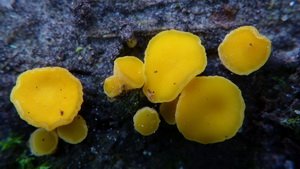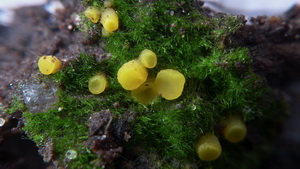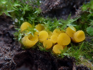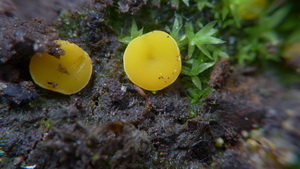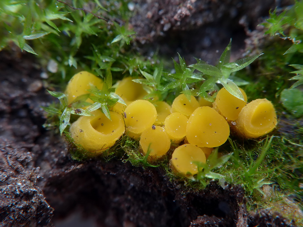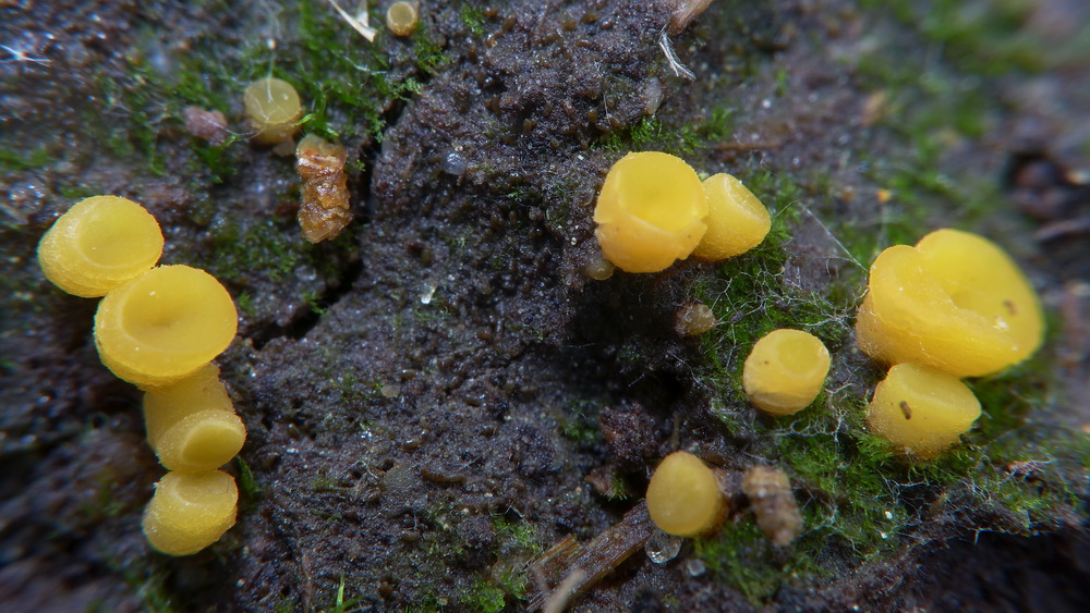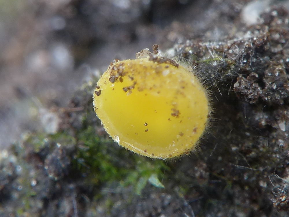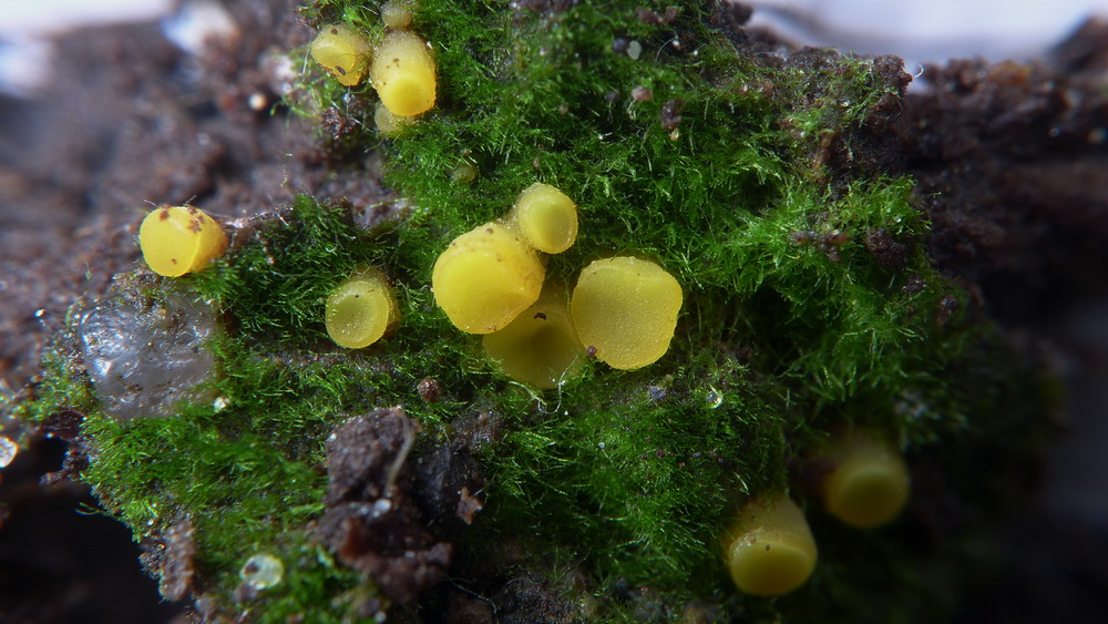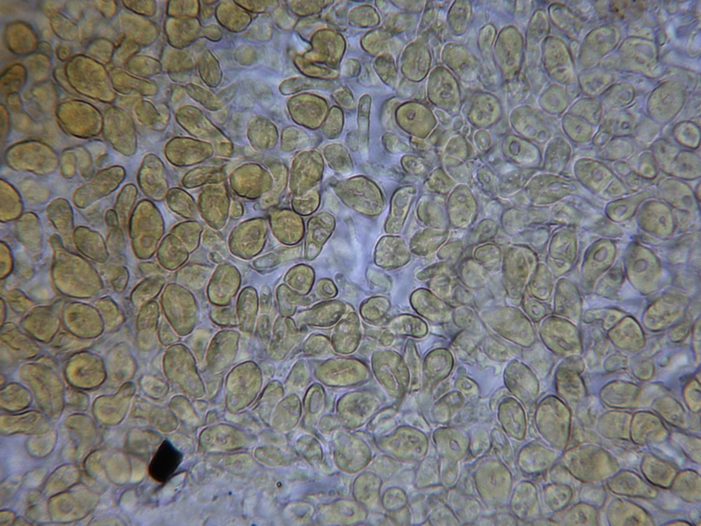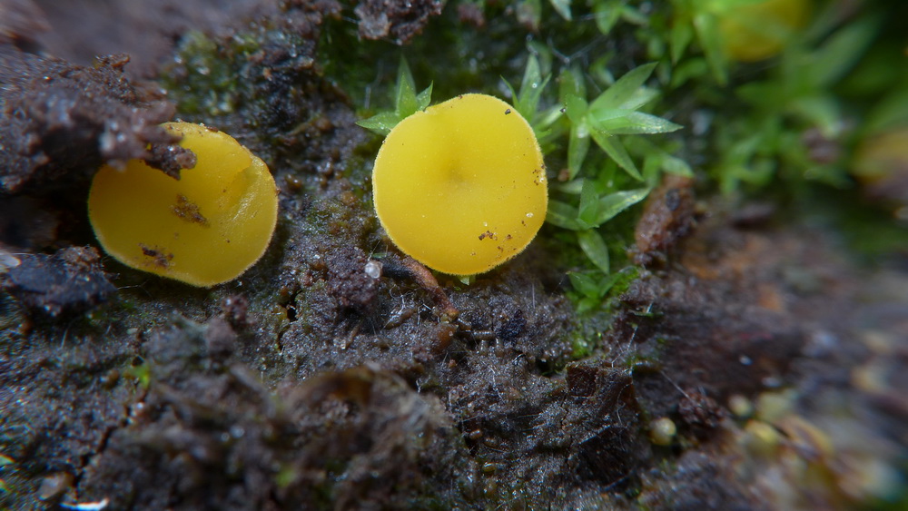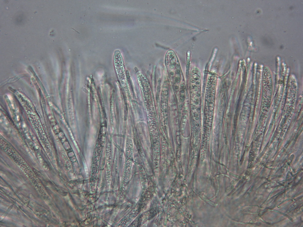 “Die Abtrennung zwischen P. epiphyllum und P. monticola ist nicht einfach. Tauglich dafür sind die Paraphyseninhalte: multiguttulat in epiphyllum, mehr verlängerte Vakuolenkörper in monticola, was hier der Fall scheint. Hilfreich ist auch das Excipulum an der Margo, prismatisch in epiphyllum, mehr isodiametrisch in monticola, was hier eher zutrifft. Schlussendlich habe ich noch nie ein so intensiv gelbes epiphyllum gesehen, das ist meist creme-farben, während monticola genau so intensiv gelb ist. Ja, und epiphyllum fällt weit weg von monticola, sodass molekular denkende Persönlichkeiten die nicht in eine Gattung stellen wollen.