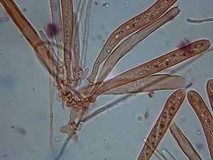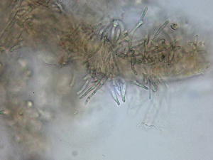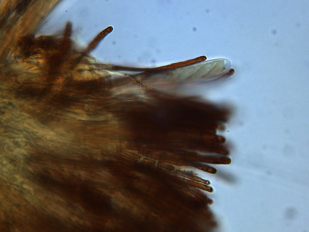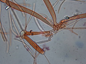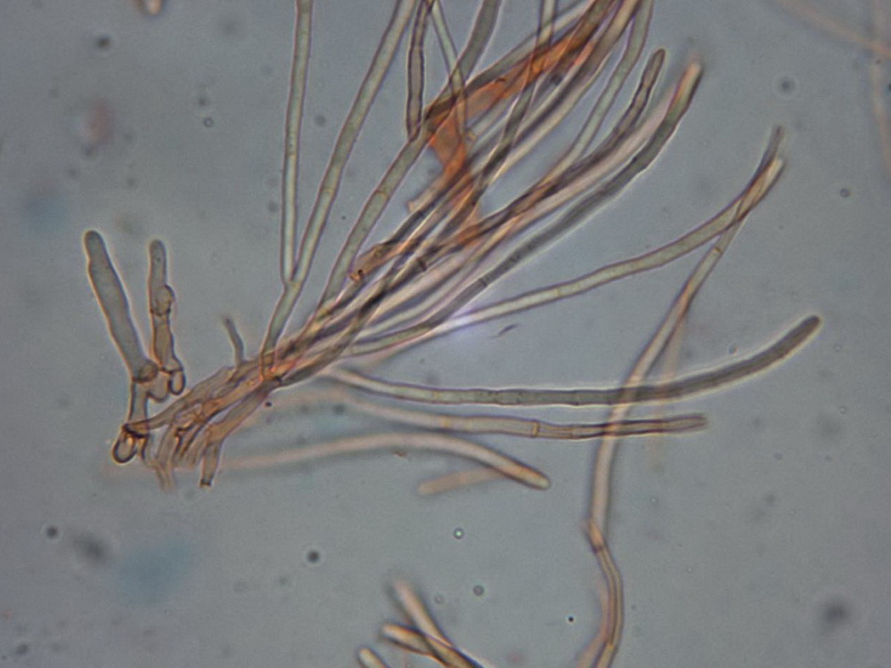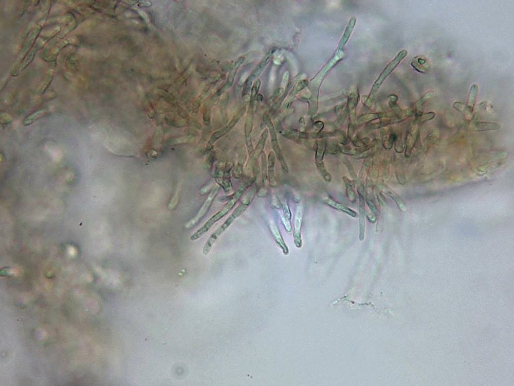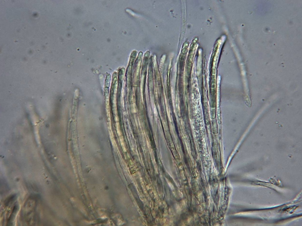 Die Vorschläge gingen über Phaeohelotium fulvidulum (= Pachydisca fulvidula) (ohne Haken, aber gelbliche Paraphysen)
