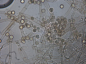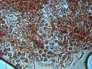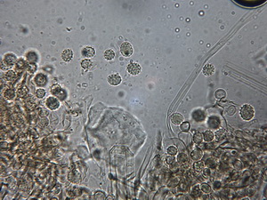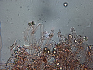 Sporen: 6,7 - 8,2 x 5,9 - 7,2 µm,