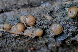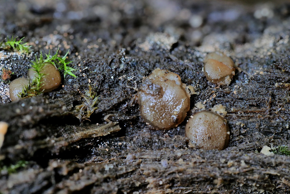 auf liegendem, morschen, feuchtem, Erlenast in Bachnähe.
