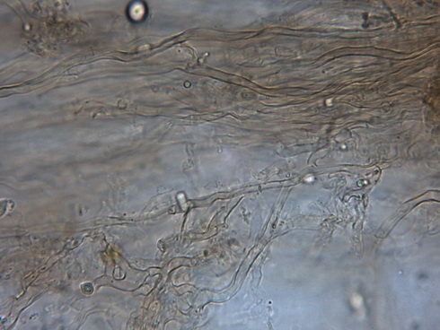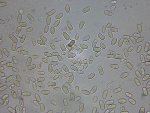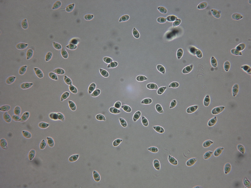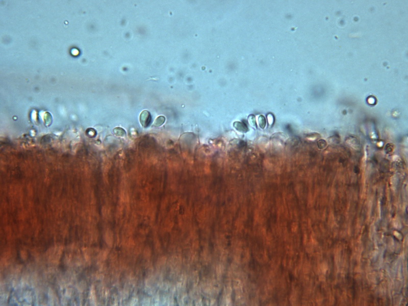 Skeletthyphen deutlich vorhanden, Schnallen nicht gesehen, Sporen: 5,8 - 8,2 x 2,9 - 3,7 µm