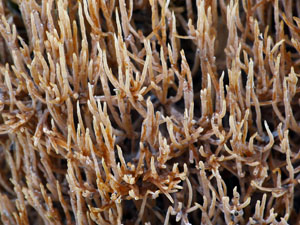 Die verschiedenen Einzelfruchtkörper sind in den starken Verästelungen oft miteinander verklebt- verbunden.