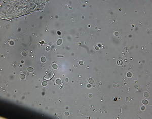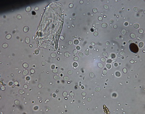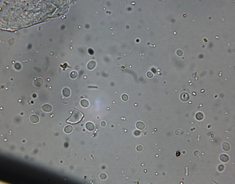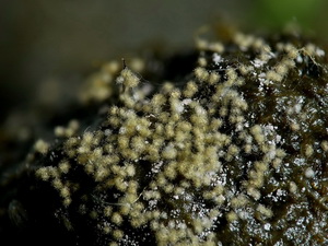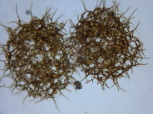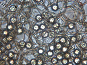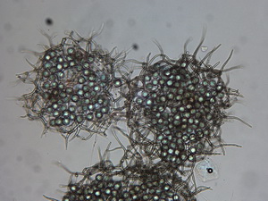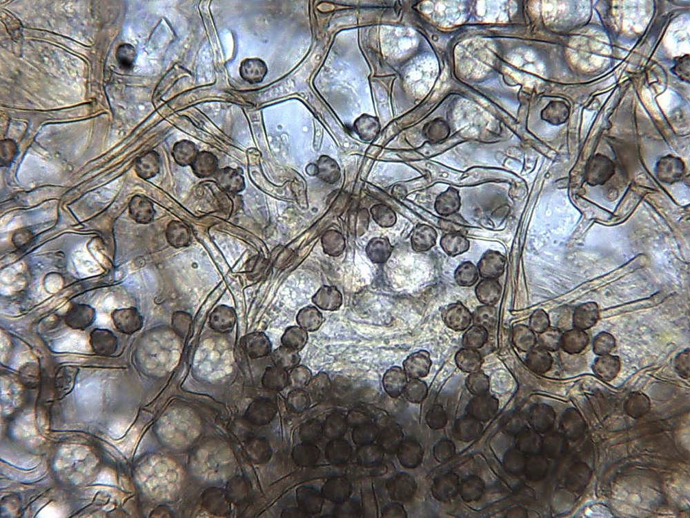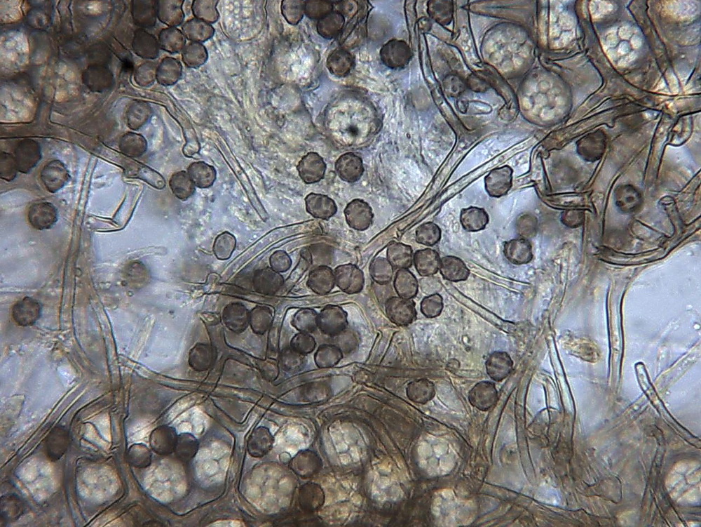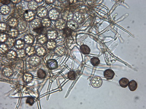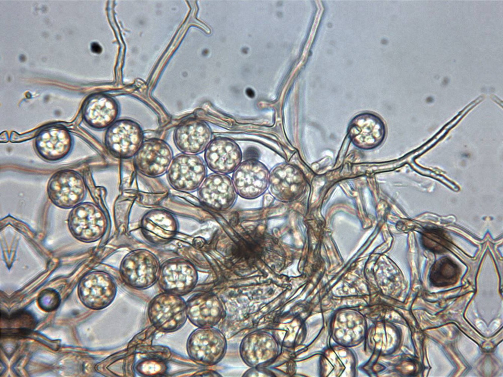 Die Asci sind jetzt wohl eindeutig 8-sporig. Unreife Asci täuschen 16 bis 32 sporige Asci vor, beim Quetschen dieser Asci entweichen eine Unmenge runde blasenartige kleine und größere Tropfen. Wie diese Entwicklung zur Sporenreife führt, hat sich mir noch nicht erschlossen. Nur in wenigen Fällen, kommt es aber zu Sporenreife! Die Sporenform tendiert von fast rundlich bis leich oval. Die Sporenornamentation ist meist nur selten zu beobachten, weil wohl der natürliche Reifprozess bei der Zucht nicht richtig gegeben ist.