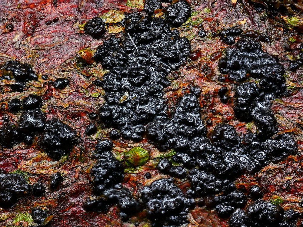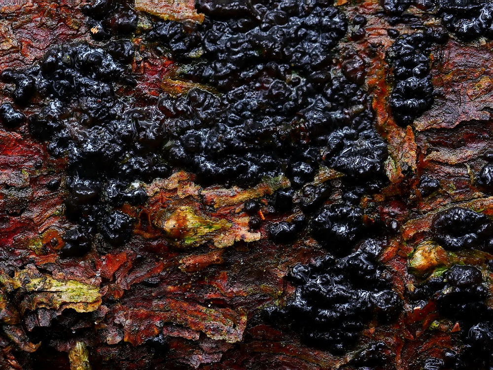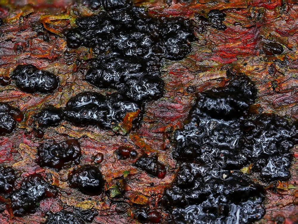 Der Teerflecken-Drüsling wächst bei sehr feuchter Witterung fast das ganze Jahr über meist an Fichten!