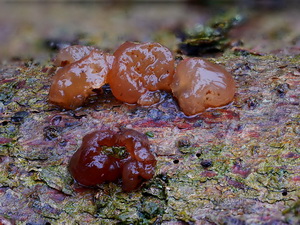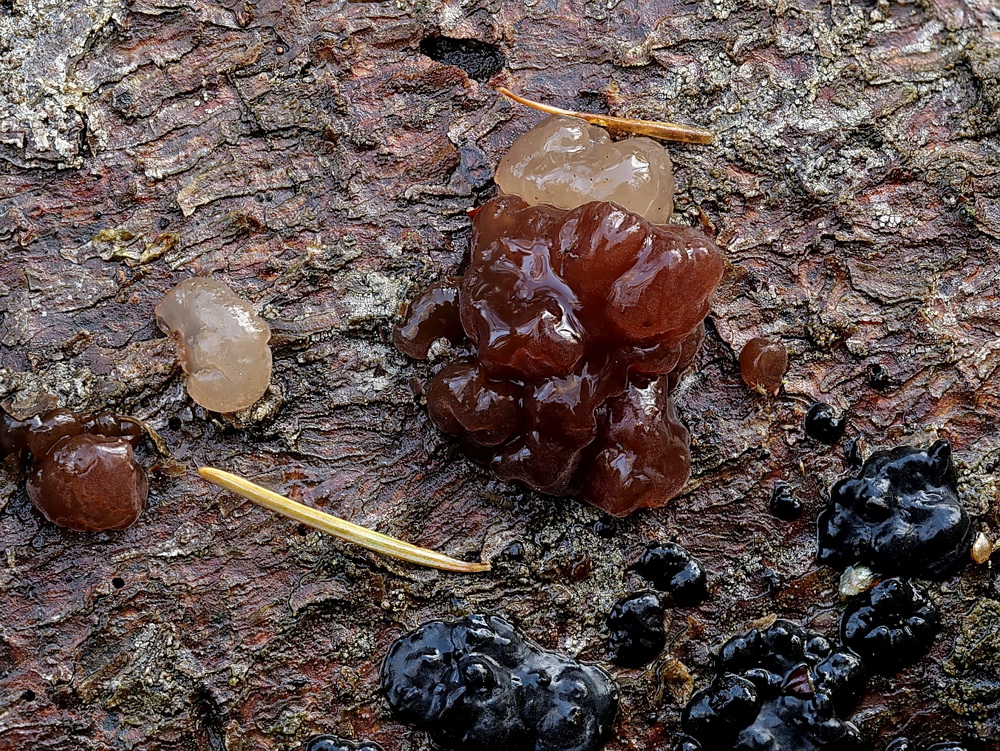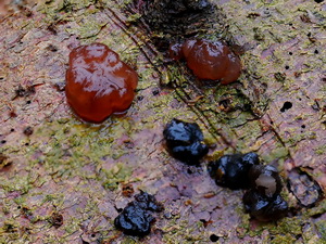 Exidia umbrinella scheint selten, wird aber sicher oft als E.saccharina angesprochen!