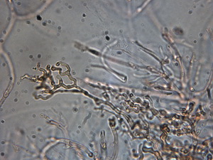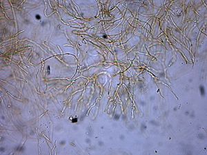 Die größeren schwarzen "Exidia nigricans" waren dickhäutiger und hatten andere Hyphidien!