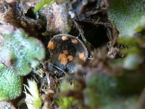 Peltigera didactyla ist eine Flechtenart die für Mykologen ein interessantes Substrat ist und bisher wenig beachtet wurde. Mit 31 bekannten Pilzarten gehört sie zu den Flechten mit den meisten verschiedenen Pilzen. Am häufigsten kann man Pronectria robergei (Mykis 17 Kartierungen) bzw die hier vorgestelt Anamorphe Illosporium carneum finden. Mit bisher 5 Fundorten - alle in Bayern - bei Mykis wohl unterkartiert.
