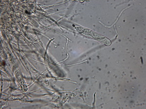 Ich habe von Hans' Fund Sequenzen machen lassen, und man halte sich fest: es handelt sich um Boubovia nicholsonii (zumindest was man derzeit darunter versteht)! Ich bin mir sehr sicher, da ich die Art von verschiedenen mediterranen Standorten kenne (Spanien, (Süd-)Frankreich, Malta, Serbien), selbst untersucht und dokumentiert habe. Die LSU von Hans' Aufsammlung ist zu 100% mit diesen Funden identisch, die ITS zu 99 %; ich habe erst an einen Fehler bei der Sequenzierung gedacht. Aber die Morphologie passt auch. Dennoch kann ich es noch immer kaum glauben, erstens weil B. nicholsonii eigentlich eine Mittelmeerart ist und zweitens weil sie bisher immer im Zusammenhang mit Debris von Cupressaceae gefunden wurde. Hans' Fund ist aber auf Damwildkot.