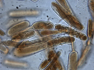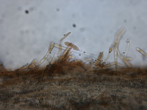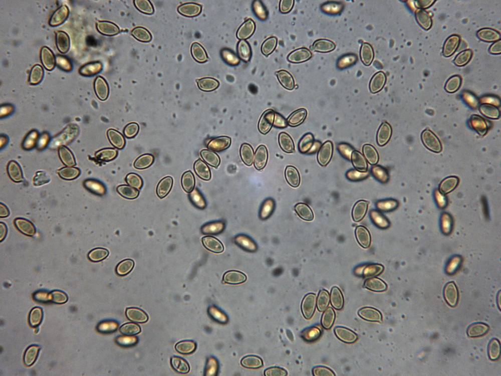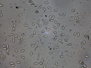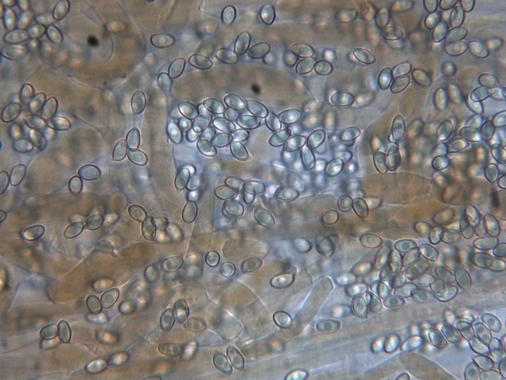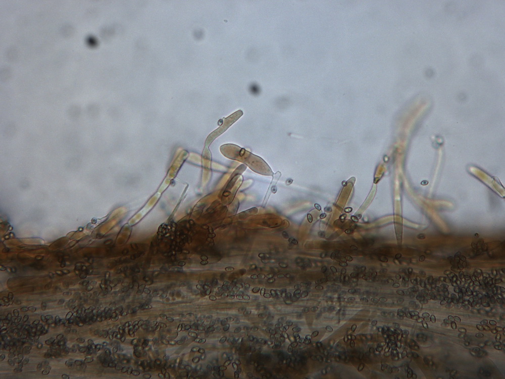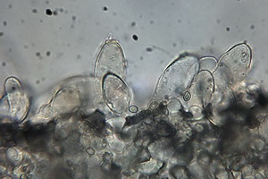Basidien: 4-sporig, Sporen: 6,3 - 7,2 x 3,5 - 4 µm,