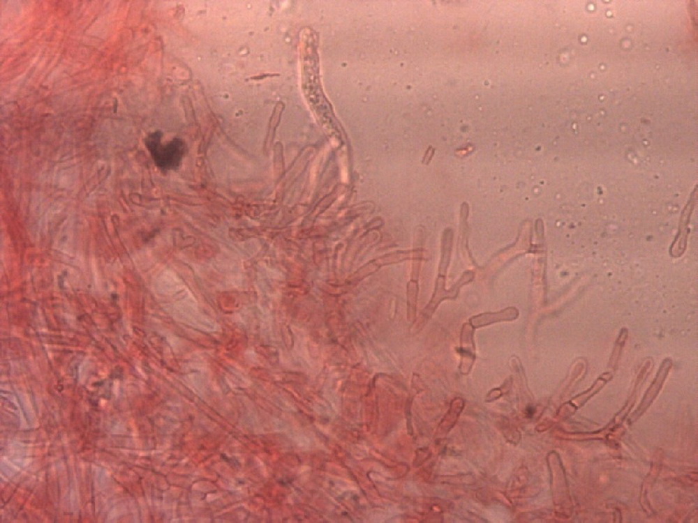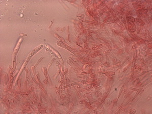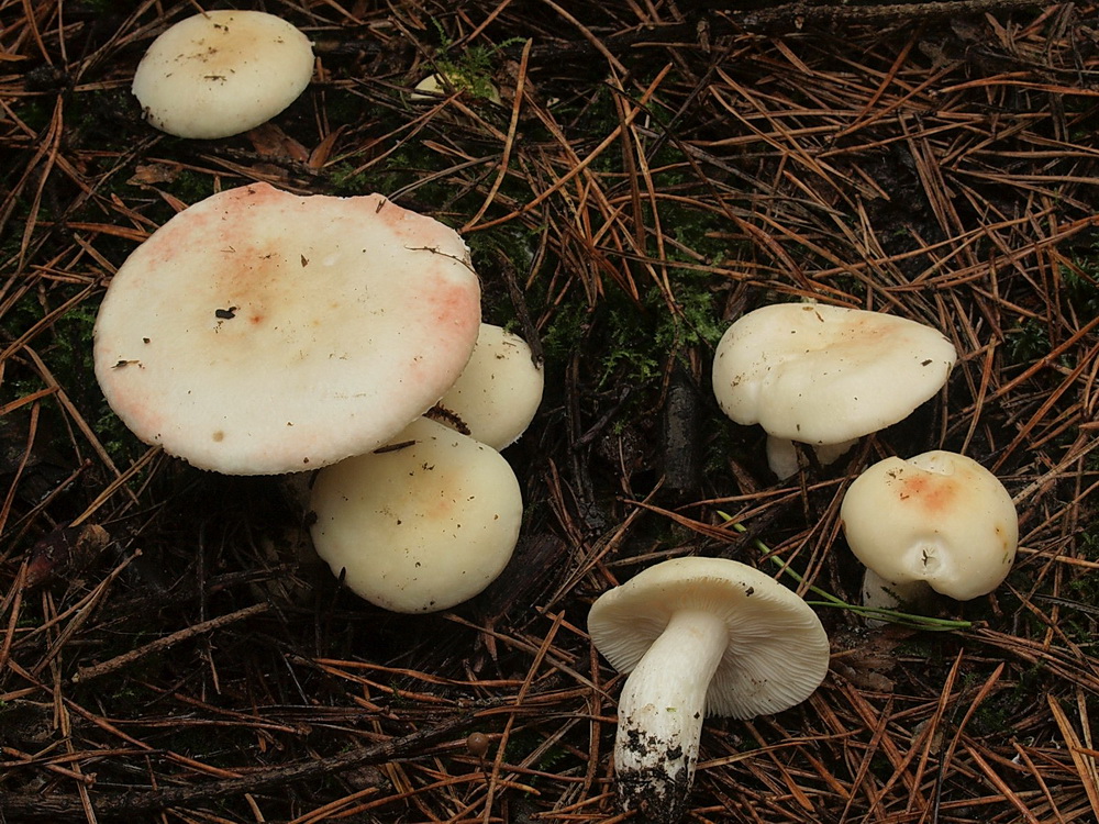 Im Randbereich einer ehemaligen Kiesgrube auf eher lehmig/sandigem Boden bei Weide und/oder Espe sowie auf einem Randstreifen bei Espe. SPP II b / c, Guajak +++, FeSO4 normal rosa. Geschmack scharf, Geruch unauffällig, Stiel nie grauend aber einmal schwach gilbend. Sporenornament aus isolierten, kurzen Graten und Warzen, mit kaum jemals längeren Verbindungen. Höhe der Ornamente ca. 0.7 mµ. Mittelwert: 7,8 x 6,0 mµ. Dermatozystiden (teilweise spärlich), mehr oder weniger zylindrisch bis teilweise zur Spitze etwas keulig erweitert. Breite nur selten über 8 mµ. Haare mit stumpfen abgerundeten Enden, selten etwas kopfig ca. bis 3 mµ breit. Die Art ist wahrscheinlich häufig, wurde aber bisher wenig beachtet und bei gleichzeitiger Anwesenheit von Birke auch als R. exalbicans angesehen.