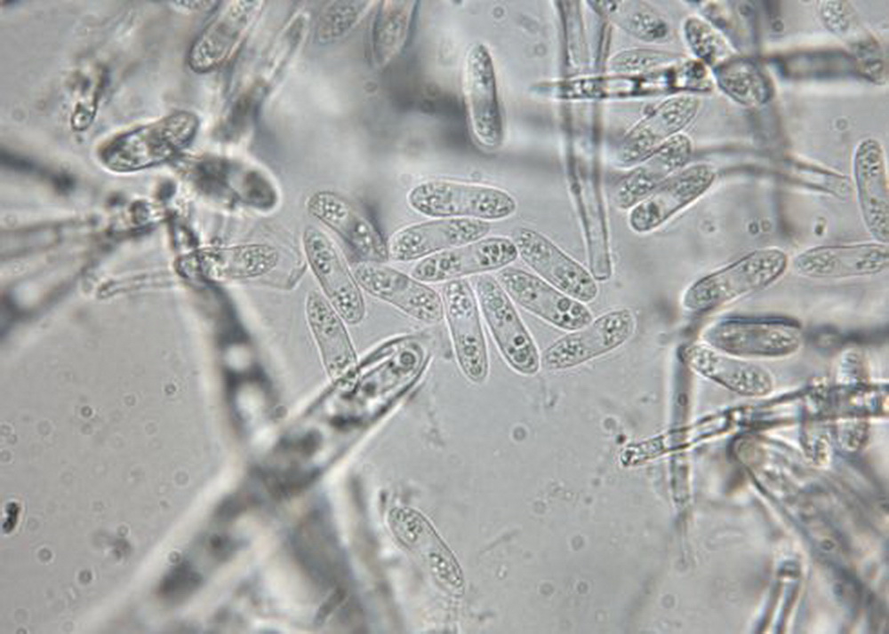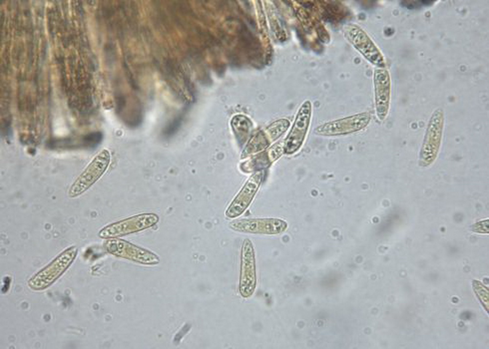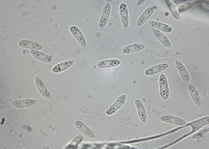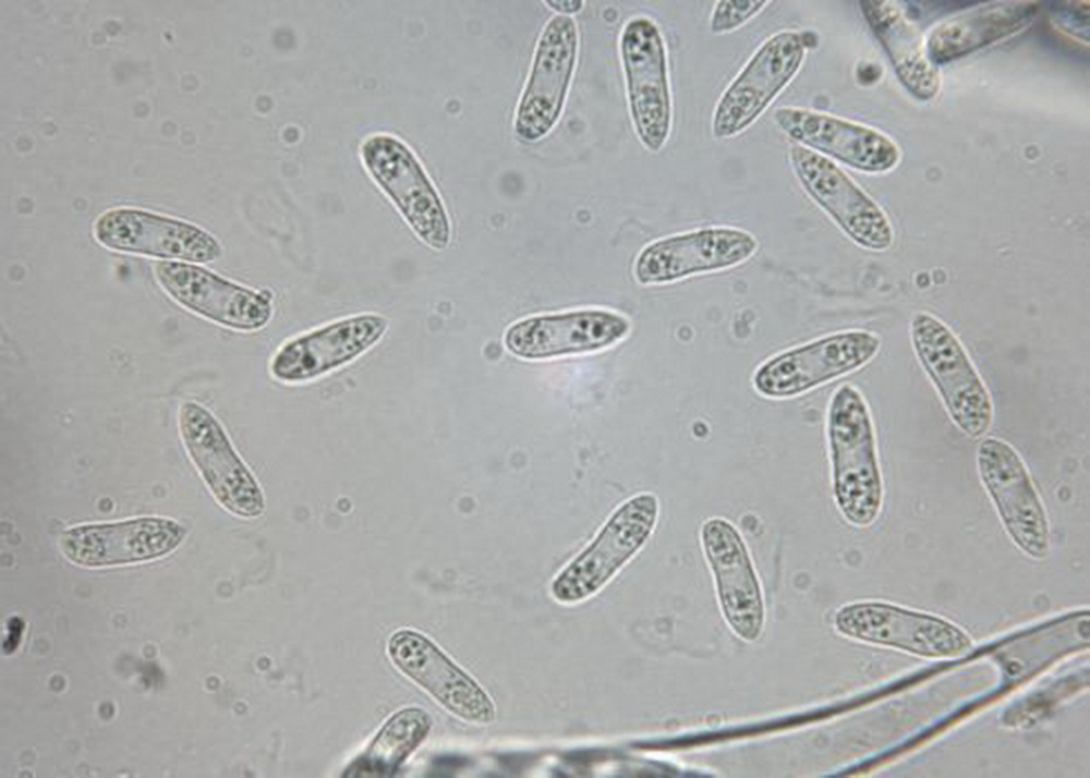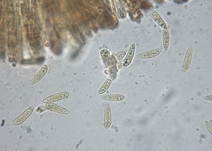 Sporen: 15,4 - 18,5 x 4,6 - 5,4 µm