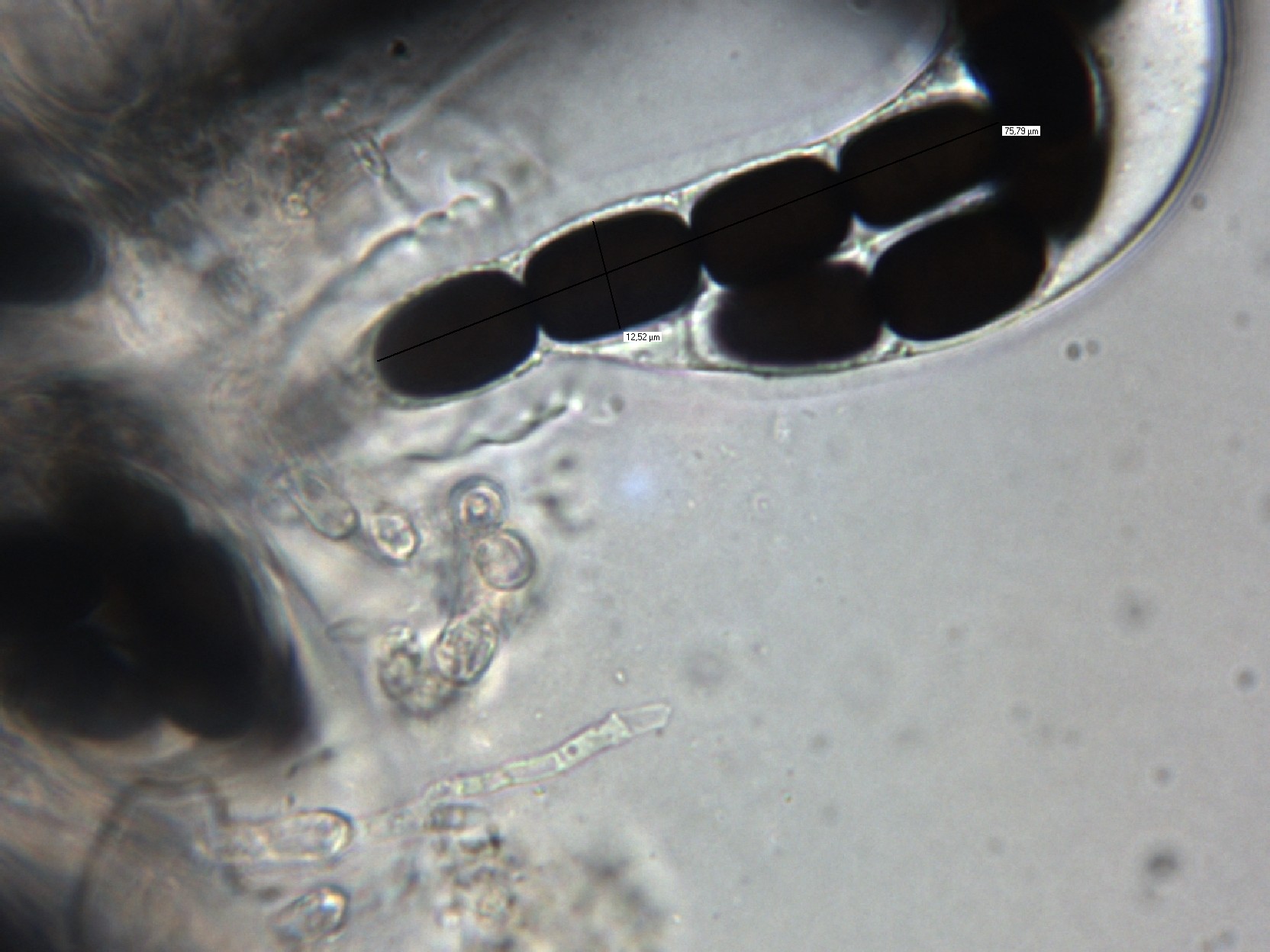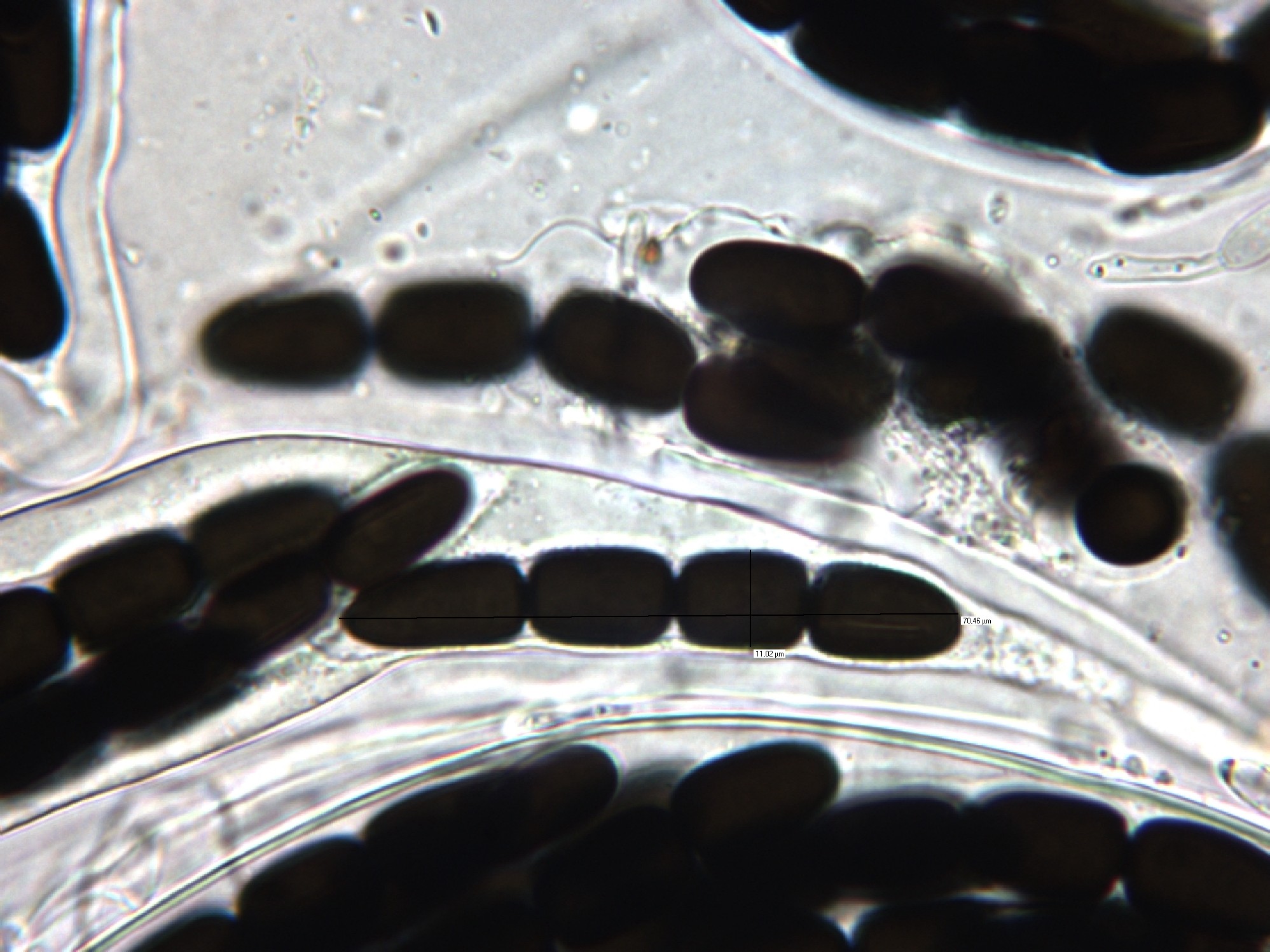 Sporengröße: 70,5 -75 x 11 - 12 µm